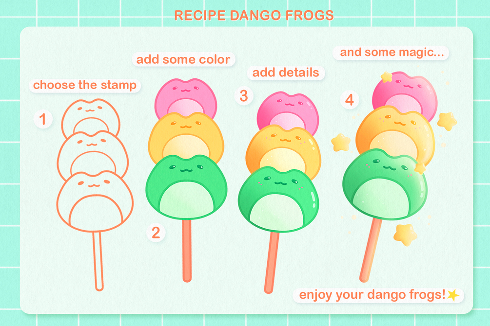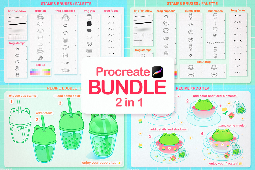Qty: 1The Procreate Stamps with Frog is perfect for cooking frog delicious and kawaii illustrations. You can also create cute stickers and illustrations with your own designs.