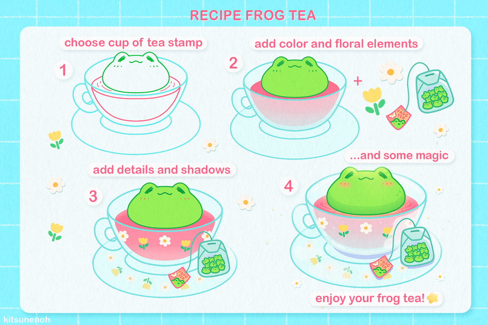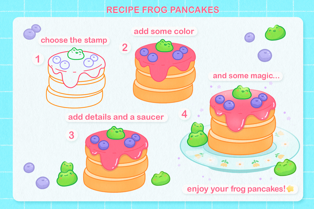 The Frog Stamps is perfect for cooking frog delicious and kawaii illustrations. You can also create cute stickers and illustrations with your own designs. You can cook cute illustrations according to recipes :)